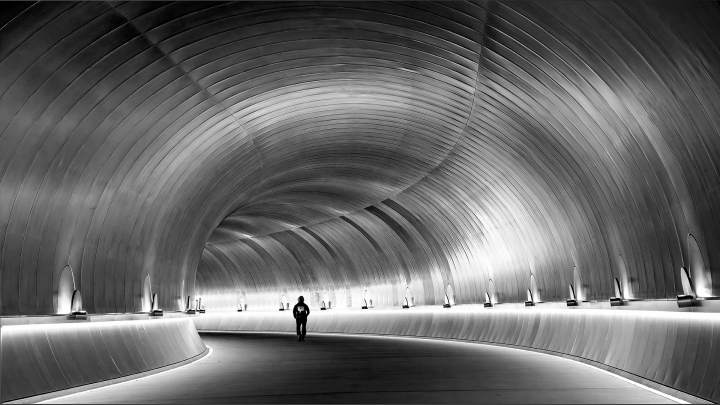 Curved Lit Tunnel