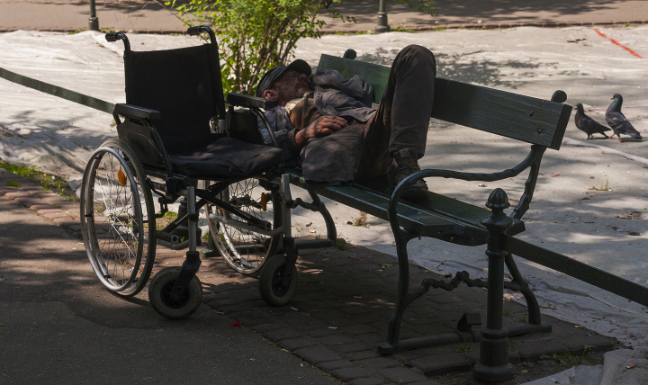 HONORABLE MENTION One-legged man on bench in KrakowBjarne Juhl Hansen, Denmark